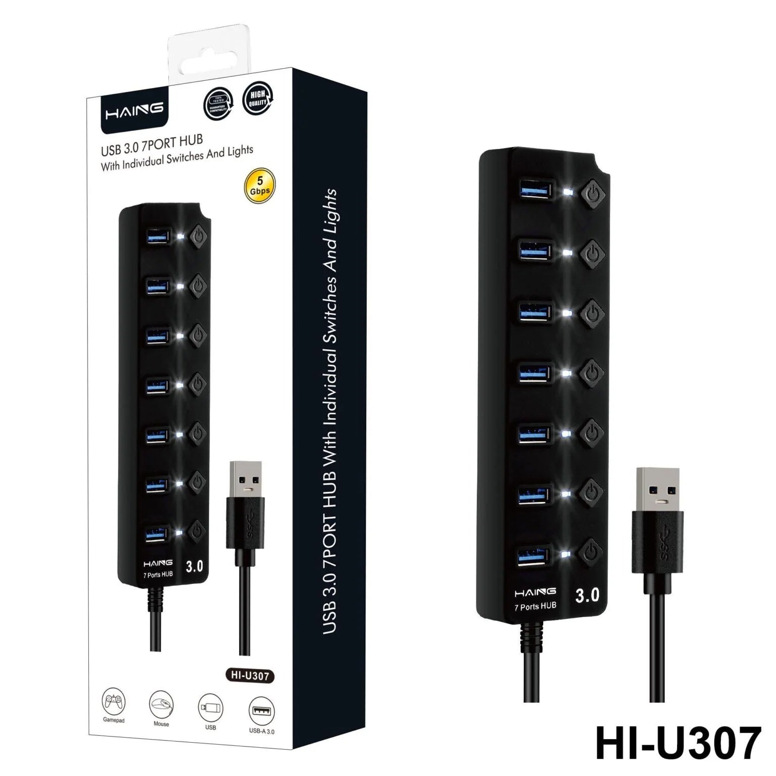 Expand your connectivity with the USB 3.0 7-Port Hub with Individual Switches and Lights — the ultimate solution for managing multiple USB devices with speed, convenience, and control.
